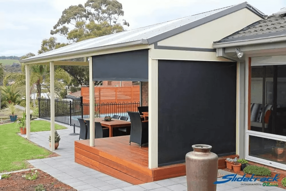 Slidetrack is an all Australian made product made especially for strong wind coastal areas. With a huge maximum width of 6.5m, it’s one of the largest single span blinds on the market. With mostly all metal parts and a heavy-duty bottom bar as standard, this blind is built tough!